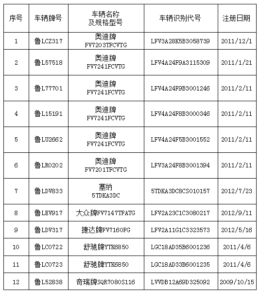 8月20日奧迪等機動車十二輛拍賣公告