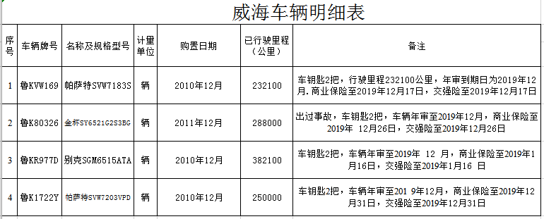 7月17日 威海地區(qū)機(jī)動(dòng)車四輛整體拍賣公告