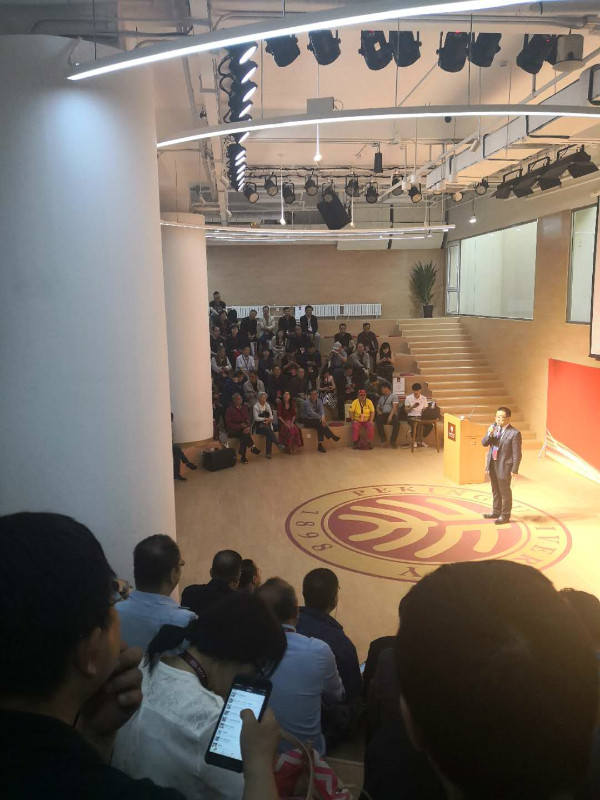 北大校長林建華在致辭中回顧了北大的歷史,并提到了北大的核心使命?!氨贝蟮暮诵氖姑桥囵B(yǎng)能夠引領(lǐng)未來的人,我們積極推進通識教育和專業(yè)教育相結(jié)合,建設(shè)多樣化的專業(yè)體系,激發(fā)興趣,調(diào)動學生的主動性與創(chuàng)造性。我們立德樹人,構(gòu)建通識教育體系,推進思想政治教育改革,培養(yǎng)學生的獨立思考和思辯能力,努力使學生懂自己、懂社會、懂中國、懂世界。”林建華說。