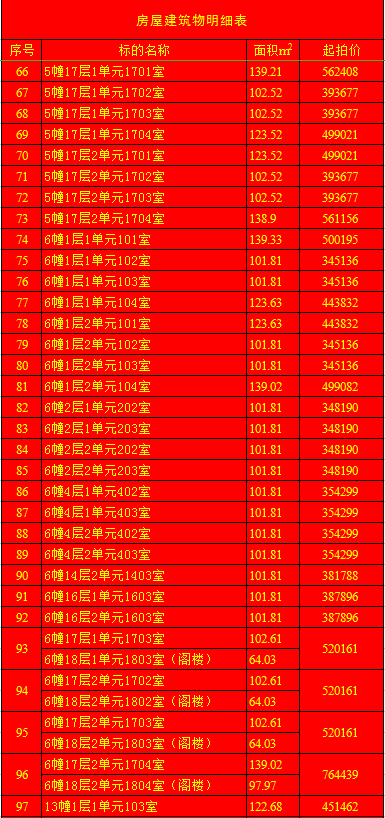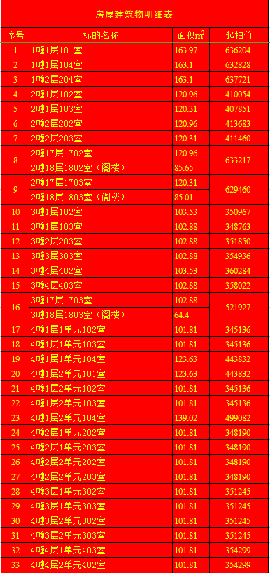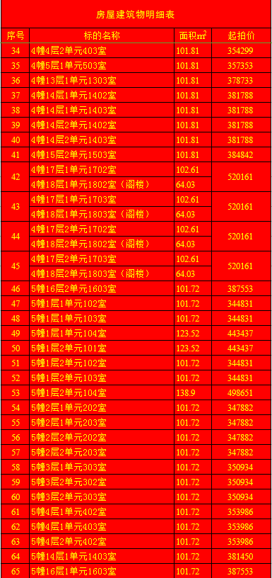 受蘭陵縣建安房地產(chǎn)開發(fā)有限公司委托,我公司定于2020年1月11日上午9時,在蘭陵縣黨校二樓會議室(順和路西段路北)公開拍賣:蘭陵縣明珠新城房產(chǎn)112套及部分儲藏室。房產(chǎn)面積64.03-163.69㎡不等(其中18套房產(chǎn)與上層閣樓整體拍賣);儲藏室面積6.28-13.02㎡不等;單套拍賣。競買保證金:房產(chǎn)5萬元/套,儲藏室1萬元/套。請微信掃描本公告下方二維碼,關(guān)注“光彩銀星拍賣”公眾號,查看拍賣標(biāo)的詳細(xì)清單。